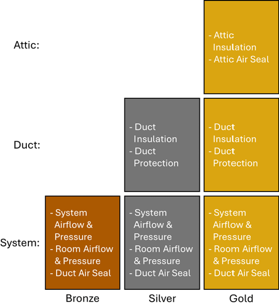 The Bronze Package is designed to correct poor HVAC duct system airflow, excessive duct system air pressure and unwanted duct system air leakage. For best long term results, we always recommend correcting the fundamental performance of your duct system first before including additional services that will enhance these improvements.