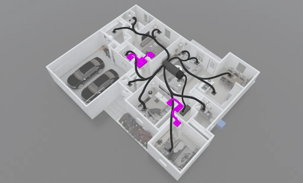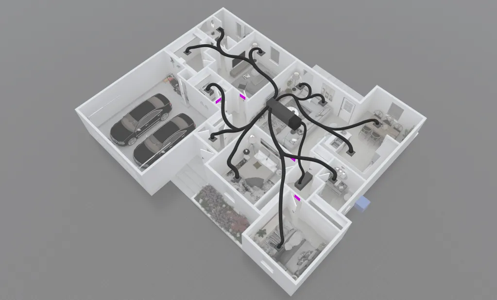 Process: We install a multi-zone system with motorized dampers, bypass ducts, a control panel, and separate thermostats or smart sensors. This allows different sections of the home to have independent temperature control.